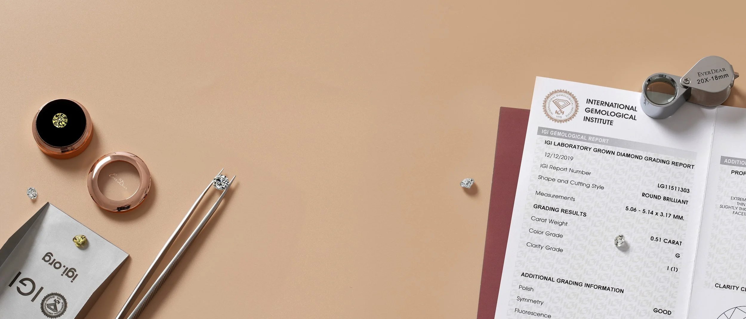 Hvert sertifikat garanterer karbonkilden til diamanten fra asken, dens 4C-sortering (farge, klarhet, sliping og karat) og innfatningsmaterialet (enten platina eller gull). Vi tar minnesmykker på største alvor, og kundene våre kan føle seg trygge på at de kjøper smykker som vil leve opp til minnet om deres kjære. Du kan være trygg på at hver gang du kjøper fra EverDear & Co. forvandler vi aske til diamanter og smykker av høyeste kvalitet, med omfattende kvalitetskontroller. Våre minnediamanter er IGI-sertifiserte.